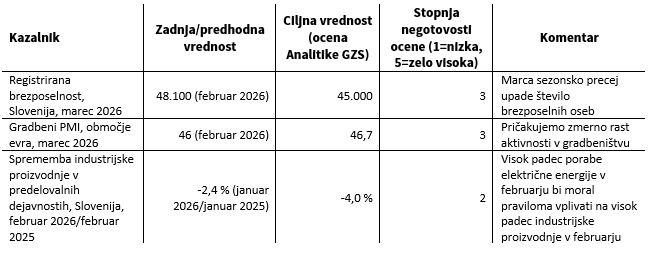 Cene surovin in energentov za evrske kupce so marca močno porasle (+29,3 %), kar je največja mesečna rast doslej, predvsem zaradi skoka cen energentov (+45 %). Cene surove nafte brent so dosegle večletni vrh, rast pa je povezana z zaostrenimi razmerami na Bližnjem vzhodu, motnjami v transportu skozi Hormuško ožino ter poškodovano infrastrukturo. Cene zemeljskega plina v Evropi so prav tako močno narasle, medtem ko so v ZDA zaradi večje samooskrbe upadle. Neenergetske surovine so se podražile zmerneje, a še vedno opazno. Med kmetijskimi surovinami so se zvišale cene rastlinskih olj, pšenice in sladkorja, medtem ko je kakav cenejši. Med kovinami je izstopala rast cen aluminija in železove rude. Povečali so se tudi cenovni pritiski v industriji ter zamude v dobavnih verigah. Negotovost na fizičnem trgu surovin ostaja visoka zaradi geopolitičnih tveganj in omejene ponudbe energentov. Vira: Svetovna banka, S&P Global